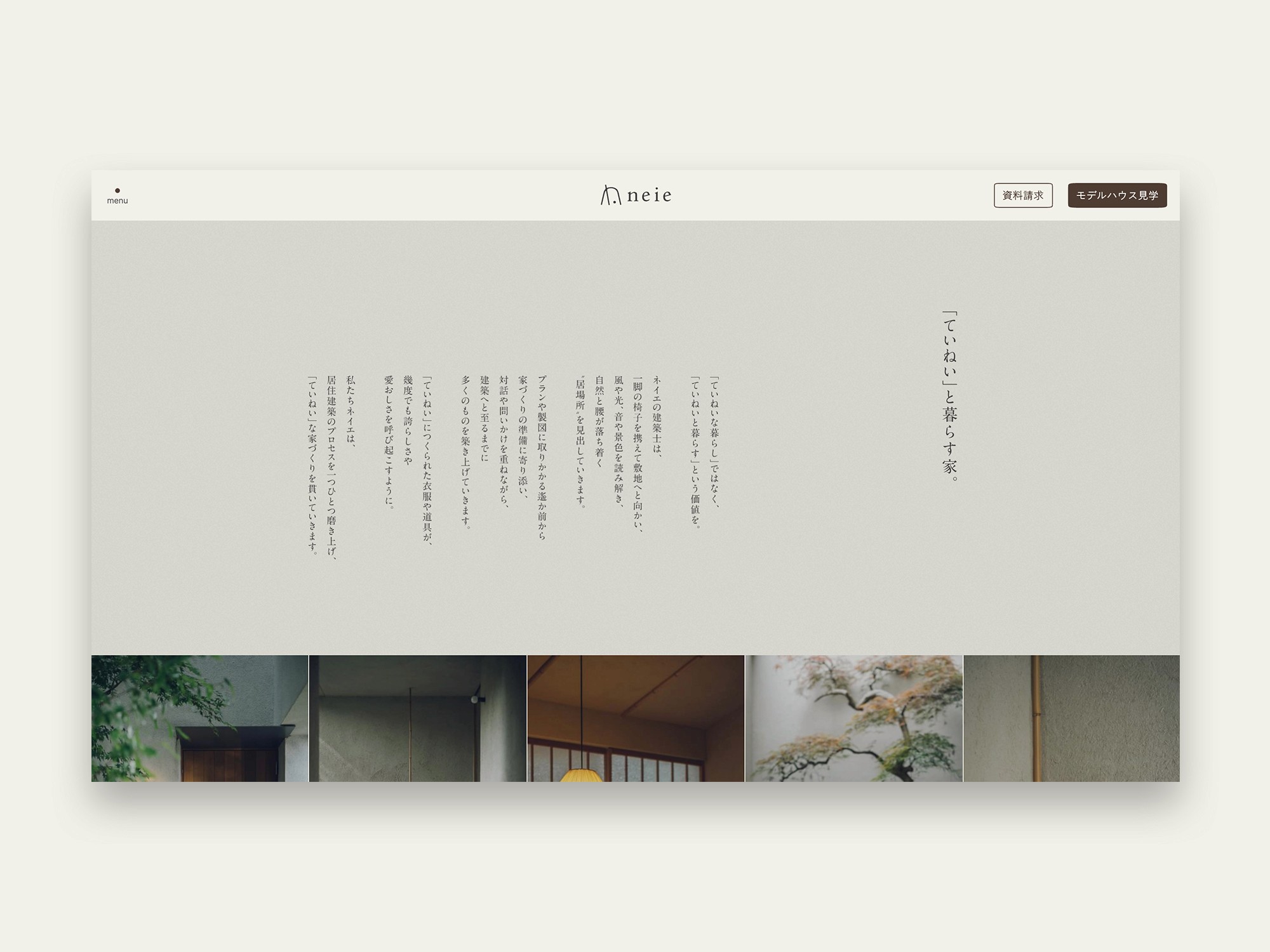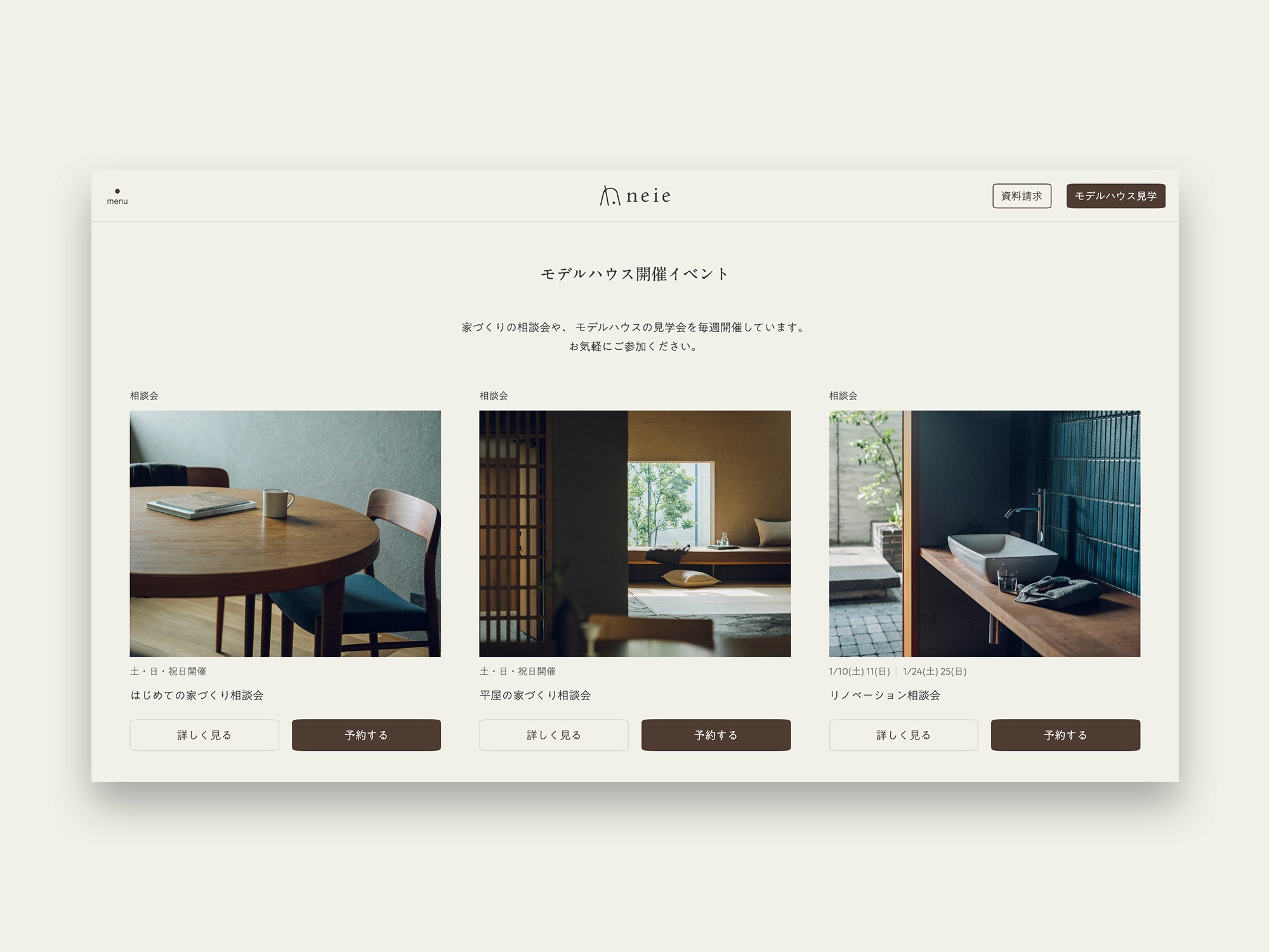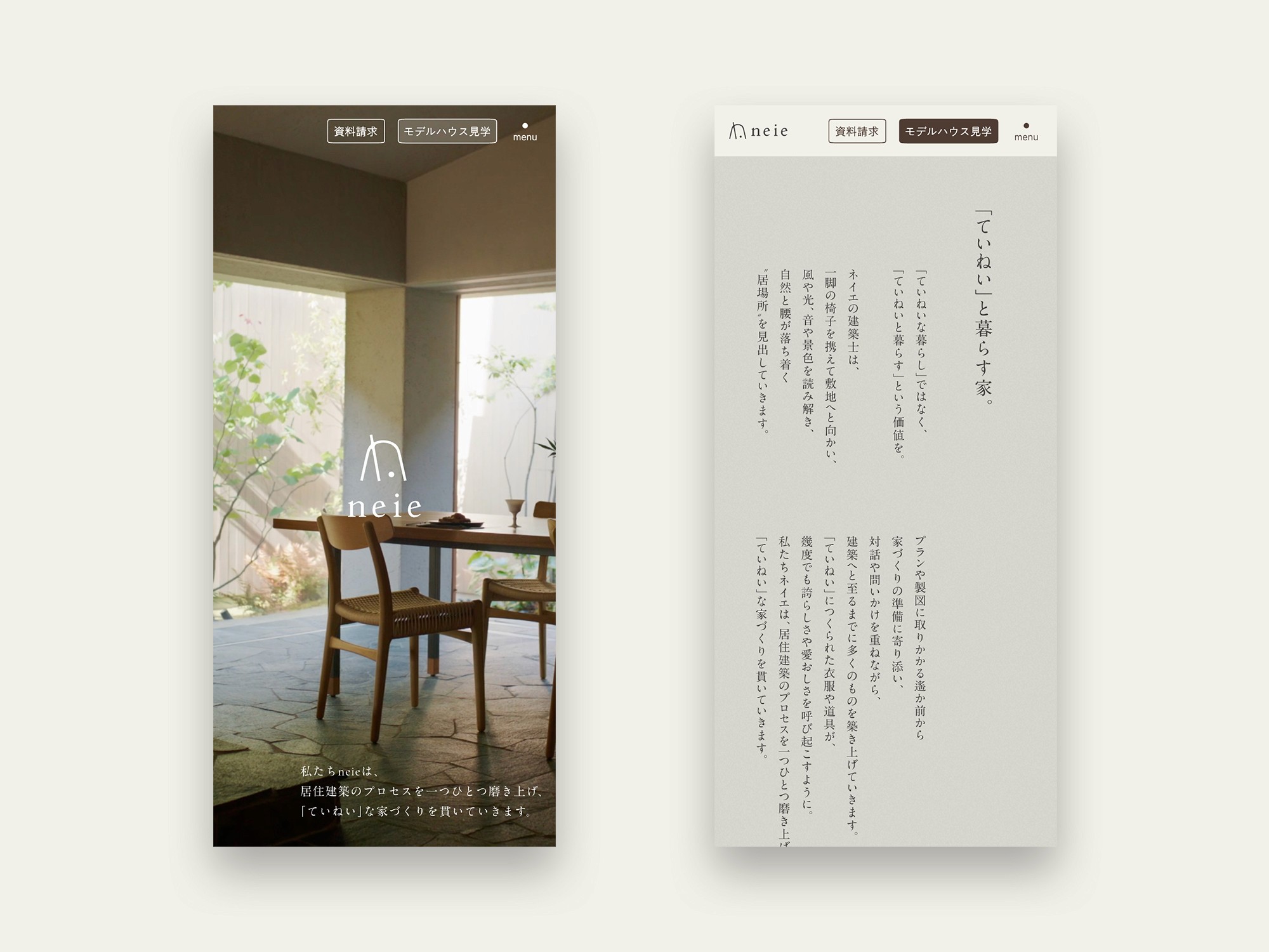 名古屋を中心に愛知・岐阜・富山で、新築注文住宅やリノベーションを手掛けている「neie(ネイエ)」のリブランディングに伴い、Webサイトデザインを担当しました。